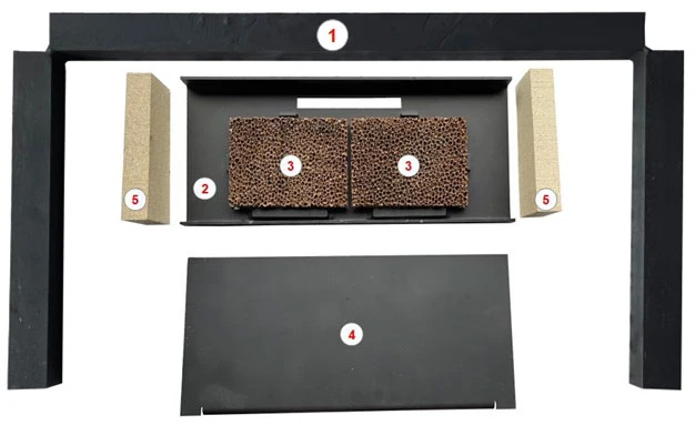 Dieser Umbausatz wurde von einer Partnerfirma entwickelt und mit entsprechenden Prüfberichten ausgestattet, so dass damit der ehemalige Kago Kaminofen den neuesten Normen entspricht